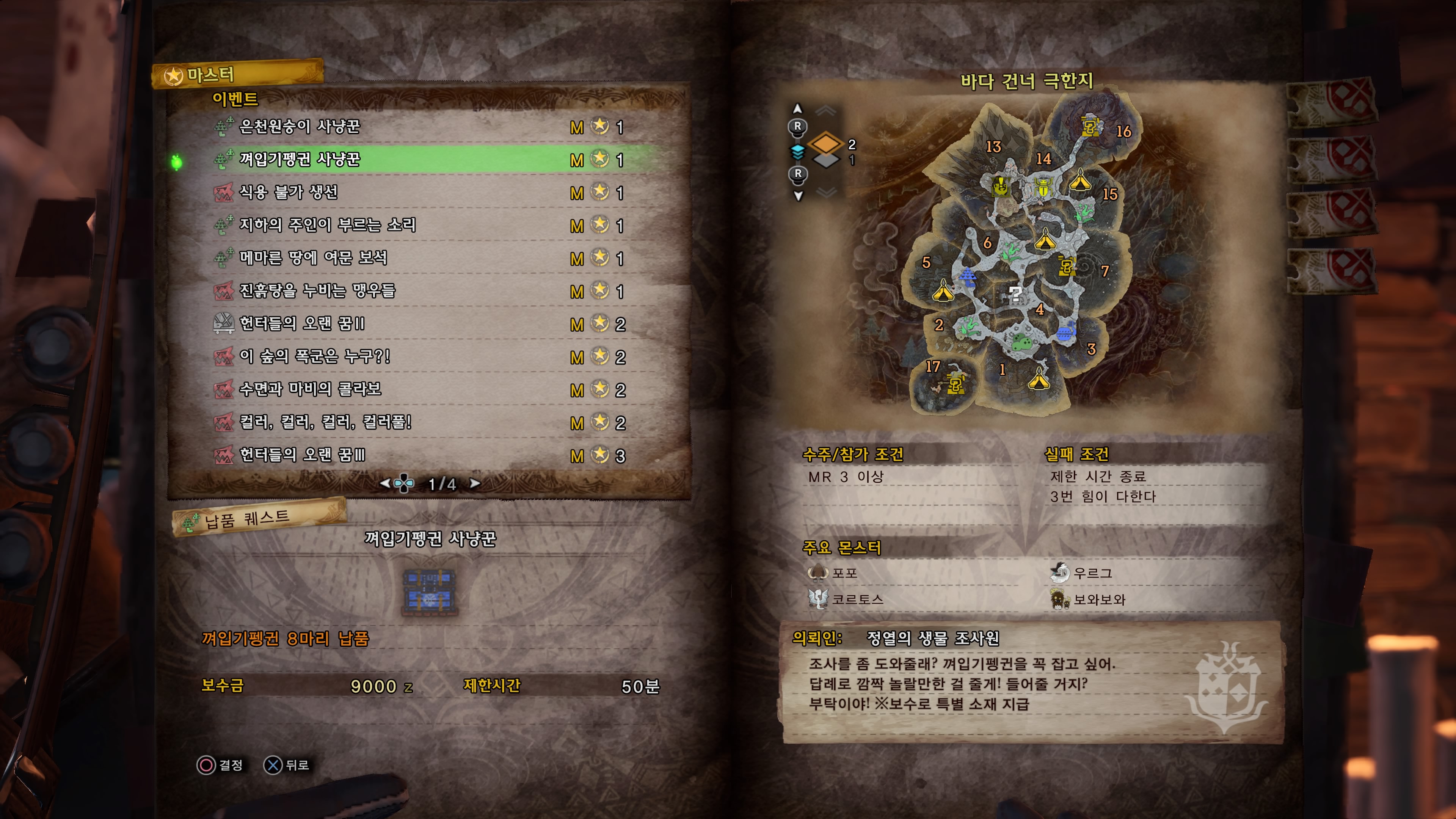 난파선 캠프에서 시작해서 난파된 배가 있는 쪽으로 가면 펭귄 8마리 정도 있는데 한번에 다 못잡아도 다른곳으로 잠깐 갔다오면 금방 리스폰 됩니다.