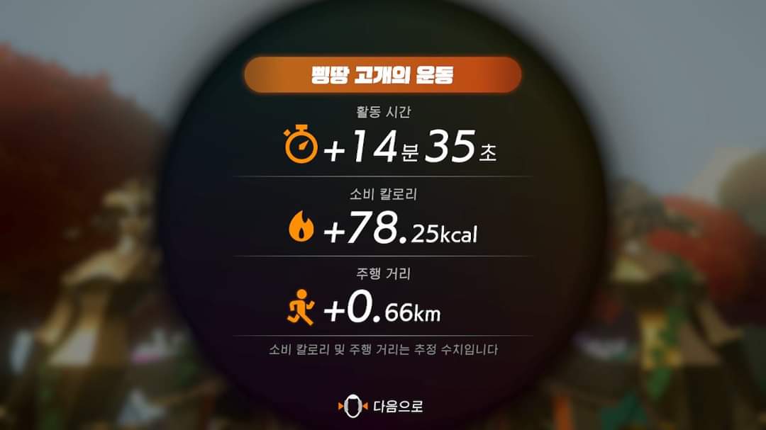 저번 스테이지가 더 힘들었는데 소비 칼로리는 더 높게 뜨네요.