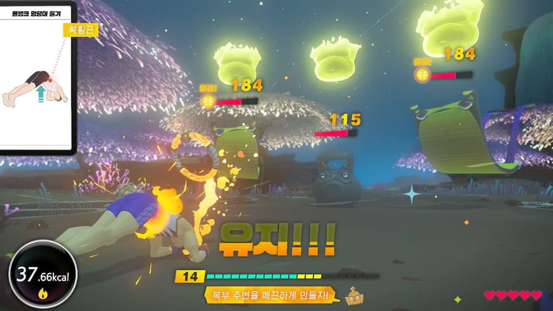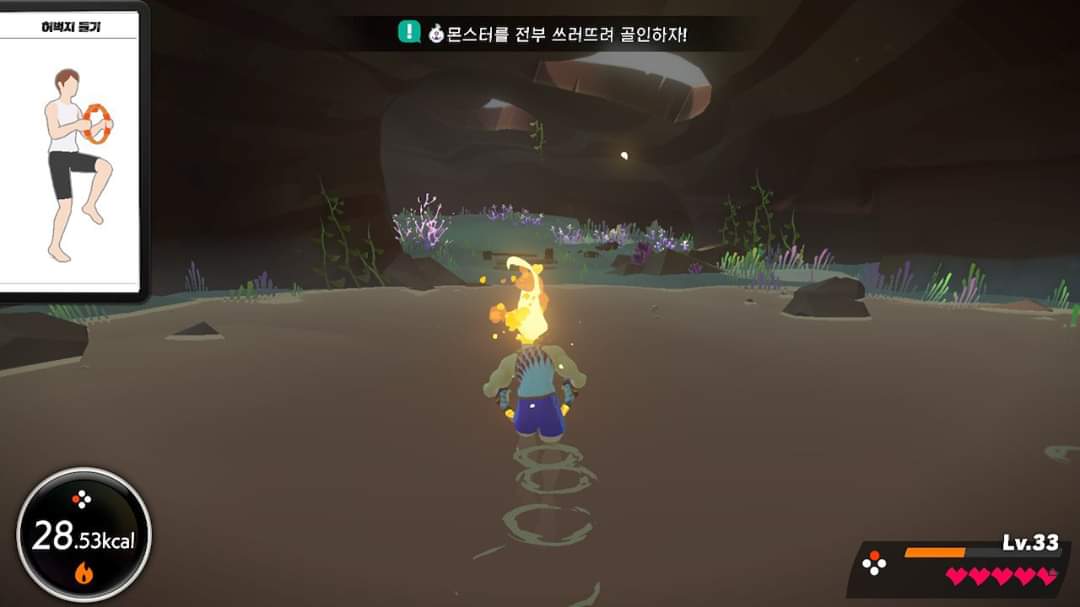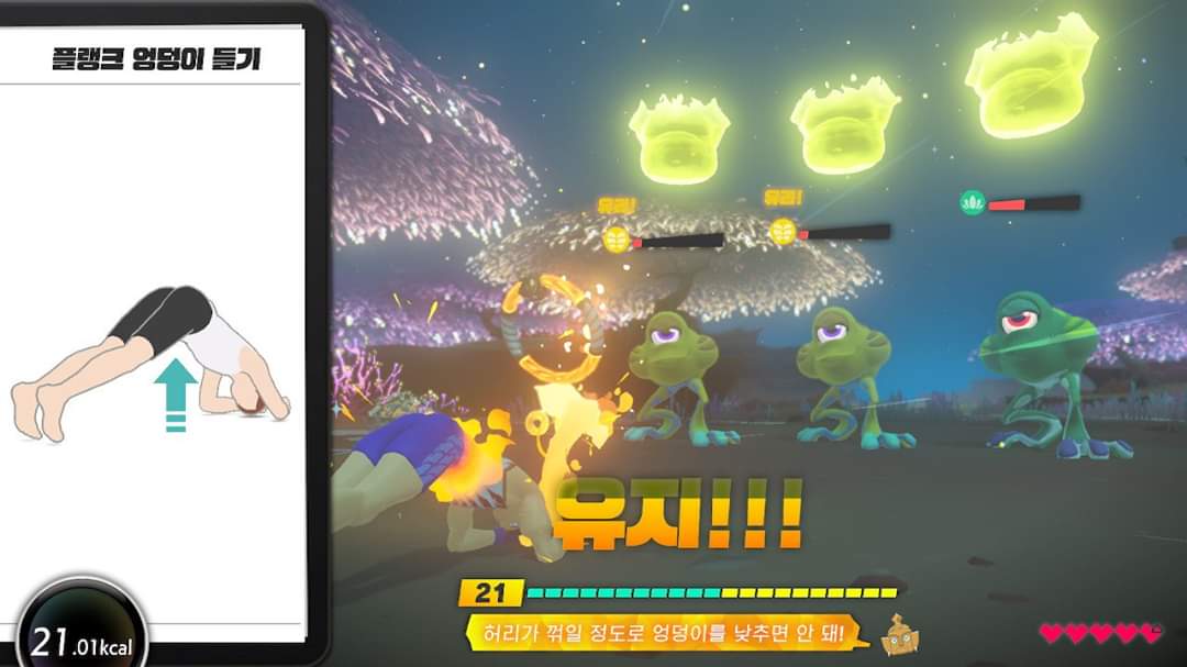 아... 저번 적들에게 플랭크로 마무리 했는데 또 적이 3마리라서 어쩔수 없이 플랭크 엉덩이 들기를...