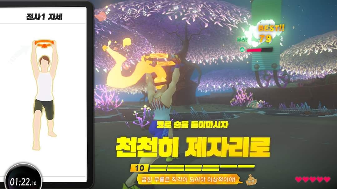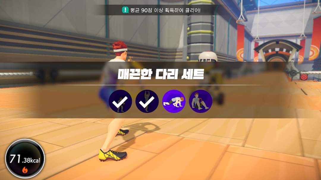 보통 적과 싸우는 운동을 할때 절반은 페이스 업으로 해서 스쿼트 할때 금방 앉았다 일어나는데 여기서는 전부 같은 페이스라 앉아서 오래 버텨야 되네요.