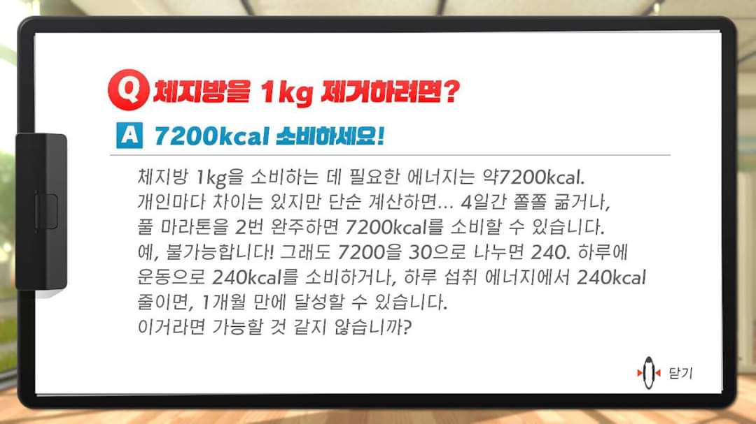 체지방 1kg을 제거하려면 7200kcal나 소비해야 된다네요.